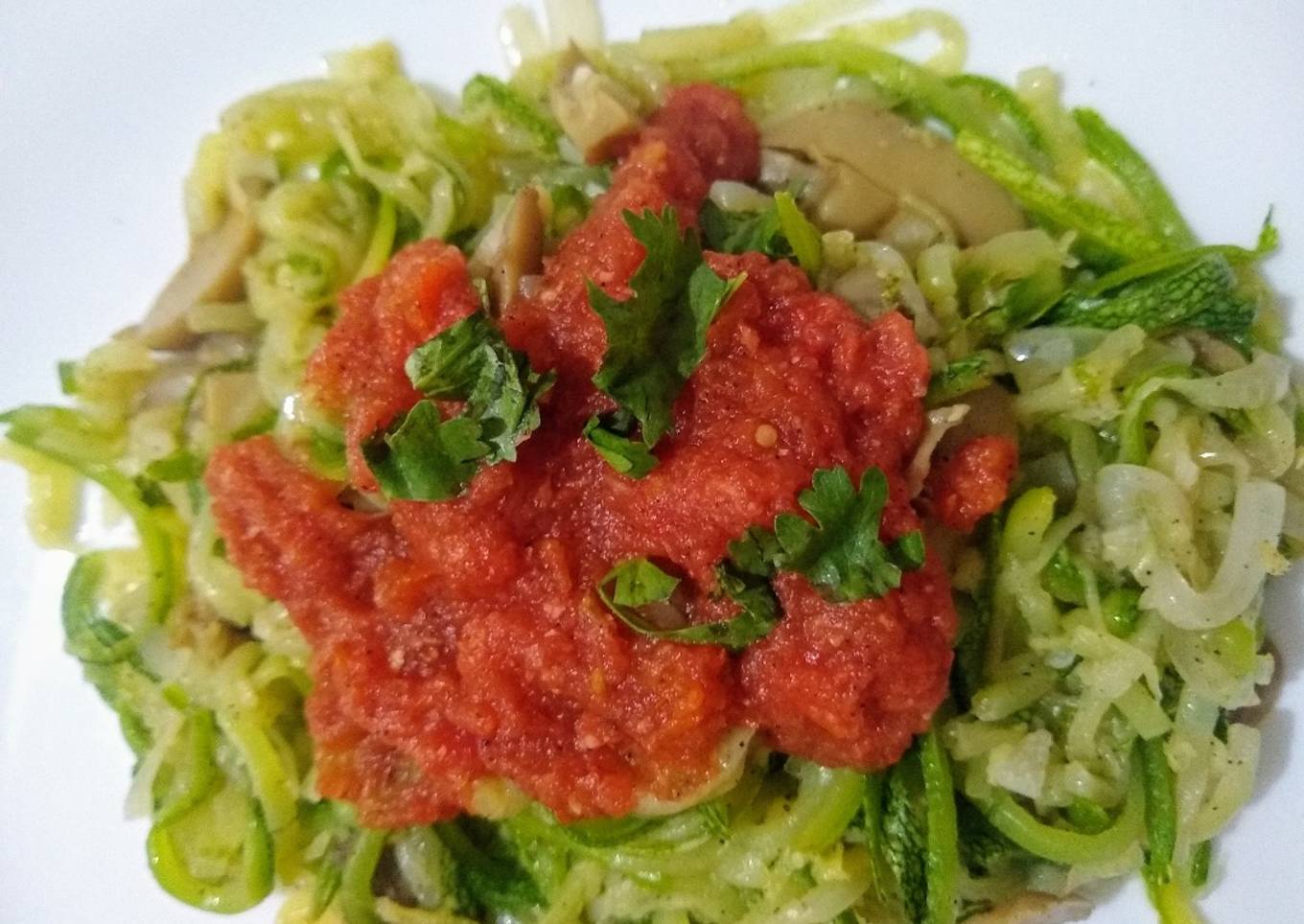 - Servir colocando el espagueti de calabazas, verter la salsa encima y decorar con cilantro o perejil. Le puedes poner queso parmesano o acompañarlo con una carne