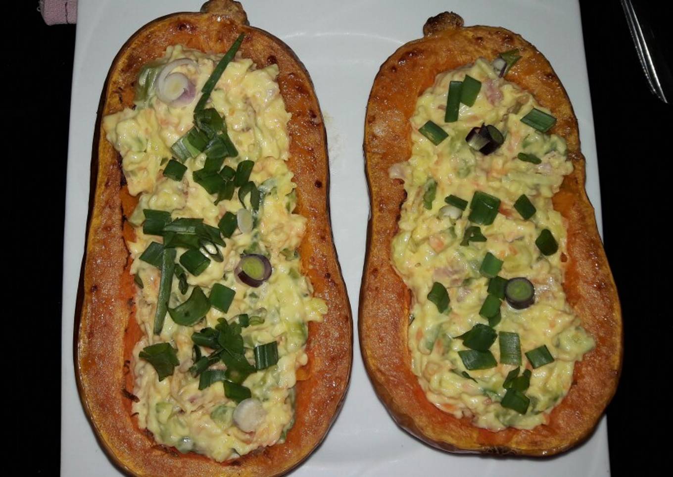 - Por último, rellenarlas y hornear 5' más para gratinar el queso, decorar con cebolla de verdeo.