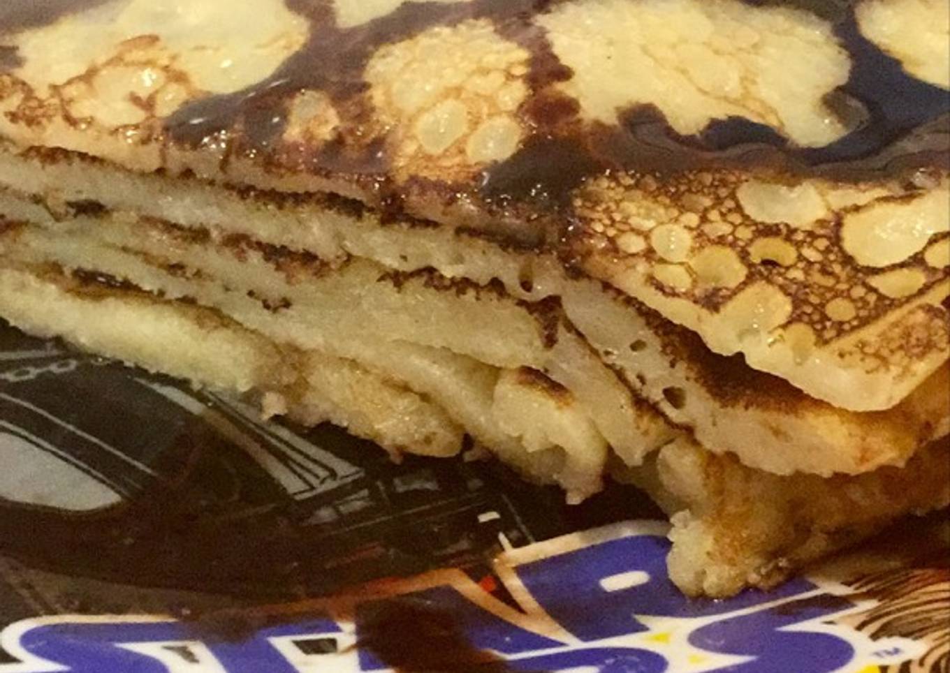 - La aguantamos unos segundos mĂĄs y a plato. Yo le añado sirope entre tortita y tortita y luego por encima đ TambiĂ©n se puede añadir nata, esto ya al gusto. ¡¡Y ahora a comer!!
